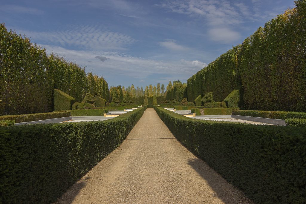 C'est sur plus de 100 hectares que ces jardins déroulent bosquets, parterres à la française, broderies de buis, bassins, terrasses, escalier de verdure, plans d'eau, fontaines, fabriques et sculptures modernes et anciennes. 60 000 buis, 10 000 charmilles, 35 000 ifs, 2 500 tilleuls y ont été plantés.